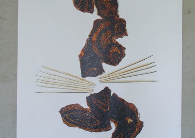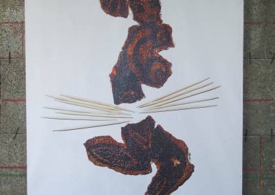 Svetlopis, ťahanica na kôre zlatovca v roku 2004, špáradlá, potlač na papieri, 140 x 200 cm (55,1 x 78,74 in.)